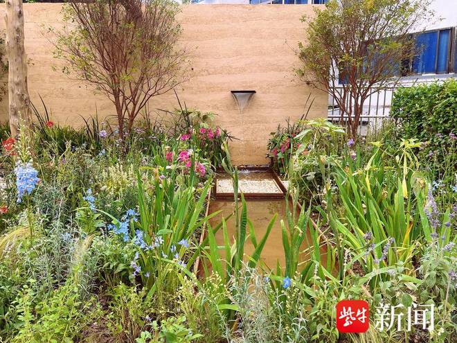 作品名为“春日农场花园”,由切尔西花展金奖设计师Leon Kluge所设计,并由上海上川景观的花园设计师蓝晓晴深化设计。蓝晓晴介绍,整个花园以春日田园农场为主题,骨架树种选用了南方的嘉宝果树(树葡萄)和四季常绿的小叶女贞树篱,主要采用观赏性花境植物,涵盖了蓝雾草、德国鸢尾、花叶蒲苇、向日葵等三十余种植物花卉,在设计搭配上不仅注重视觉美感,还强调生态的平衡和可持续性;花园内还专门铺设了步道,增加了休息座椅,让观赏者融入大自然,近距离探索每一个角落;园中的小型水景模拟了田园水渠,通过视觉与听觉的双重享受,让观赏者宛如回归到了乡野。不仅如此,花园还可以开启夜间模式,在暖色灯光的映衬下,花园也别有一番风味。