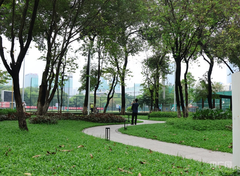 广州市城市规划勘测设计研究院有限公司人居景观院副院长陈智斌介绍,天河体育中心取消了原状多层围蔽,打造出“无界”全民共享体育公园。通过打开东北与西北两个街角空间,成功将未利用的封闭空间变成开放活泼的口袋公园,释放公共空间约960平方米,打开后的场地成为融合林下休憩、康体、慢跑等功能的绿色城市休息站,使原本功能单一的绿地转变成全民共享的开放场所。